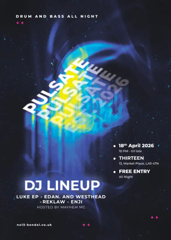 Bass-driven Drum & Bass night bringing the bass to the Lakes. Line-up: Luke EP • Edan • Westhead • Reklaw • Enji | Hosted by Mayhem MC