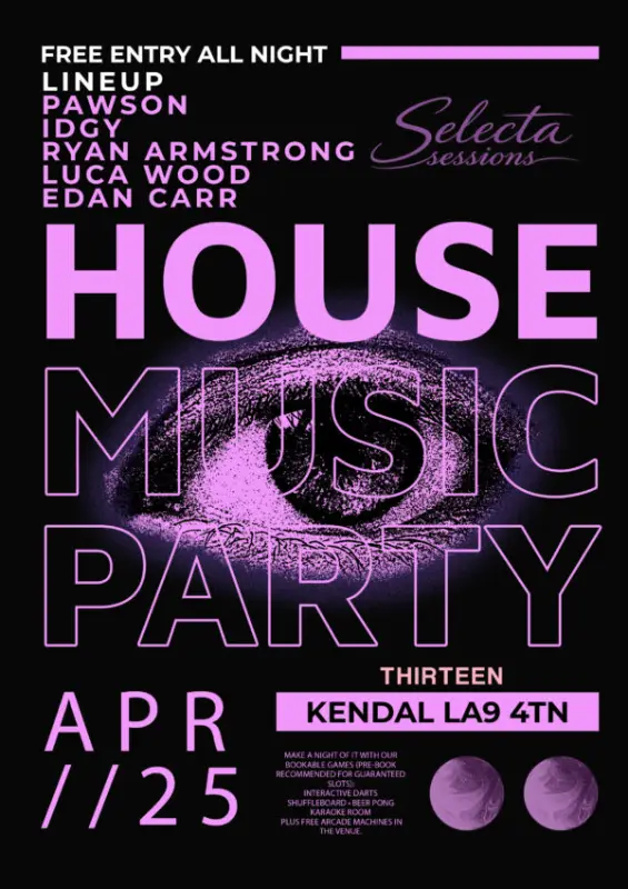 House Music All Night Long (FREE Entry) Line-up: Pawson • Idgy • Ryan Armstrong • Luca Wood • Edan Carr